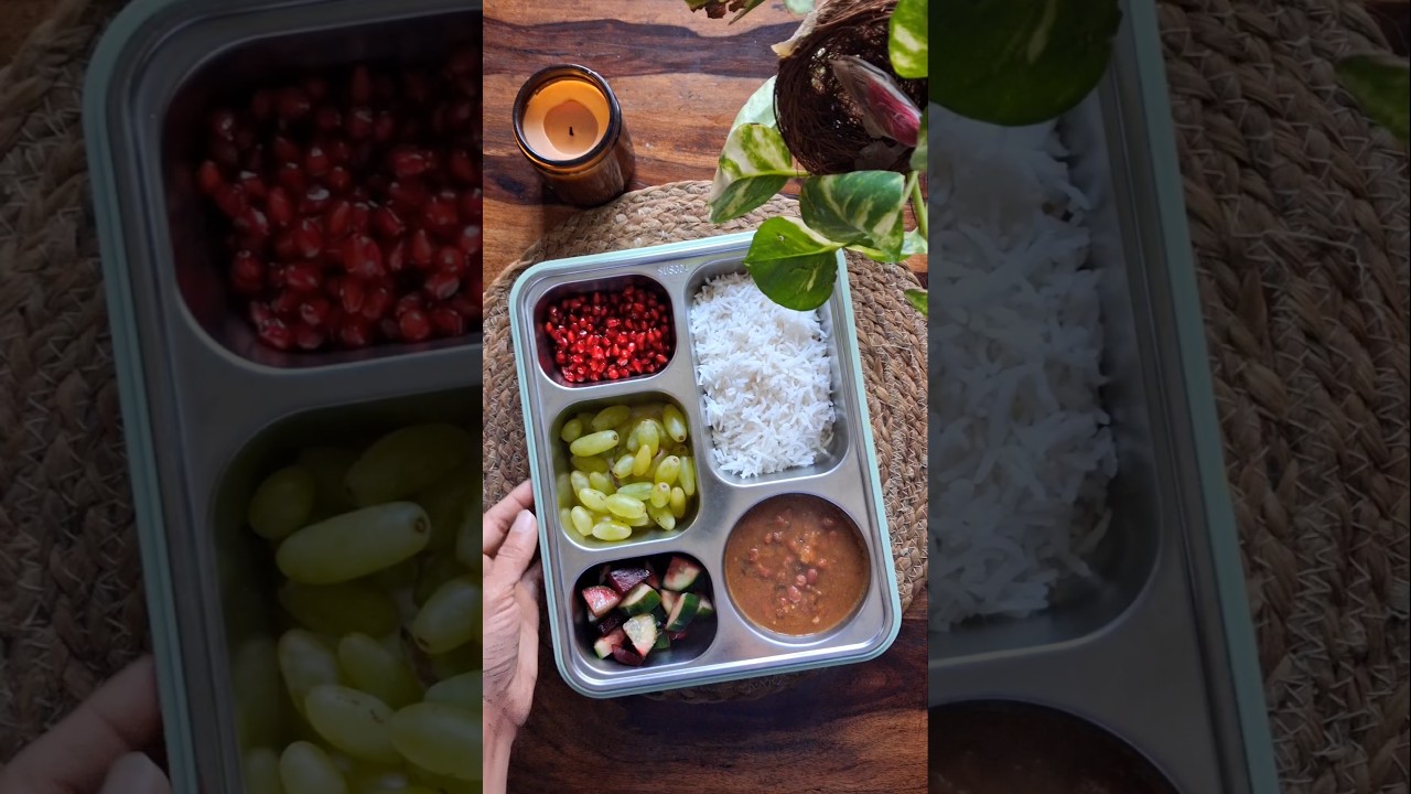 हाय नमस्कार स्वागत है आप सभी का मेरे चैनल पे आई होप आप सभी बहुत अच्छे होंगे आप सभी का मैं वेलकम करती हूं एक और लंच बॉक्स वीडियो में सो आज लंच ब्रेक के लिए गया था राजमा और चावल सो मैं कभी-कभी मिक्स करके भी दे देती हूं बट यूजली अवॉइड करती हूं और अलग से दे देती हूं ताकि जितना उसको मिस करना है और साथ में मैं हमेशा मतलब 90% टाइम प्रेफर करती हूं कि मैं दही दूं बट ही डिडंट वांट टू टेक दही तो उसको सैलेड चाहिए था तो खीरा और बीट रूट का सैलेड रखा है स्नैक्स ब्रेक के लिए रखे थोड़े से ग्रेप्स और थोड़े से अनार दैट्स इट फॉर टुडेेस लंच बॉक्स