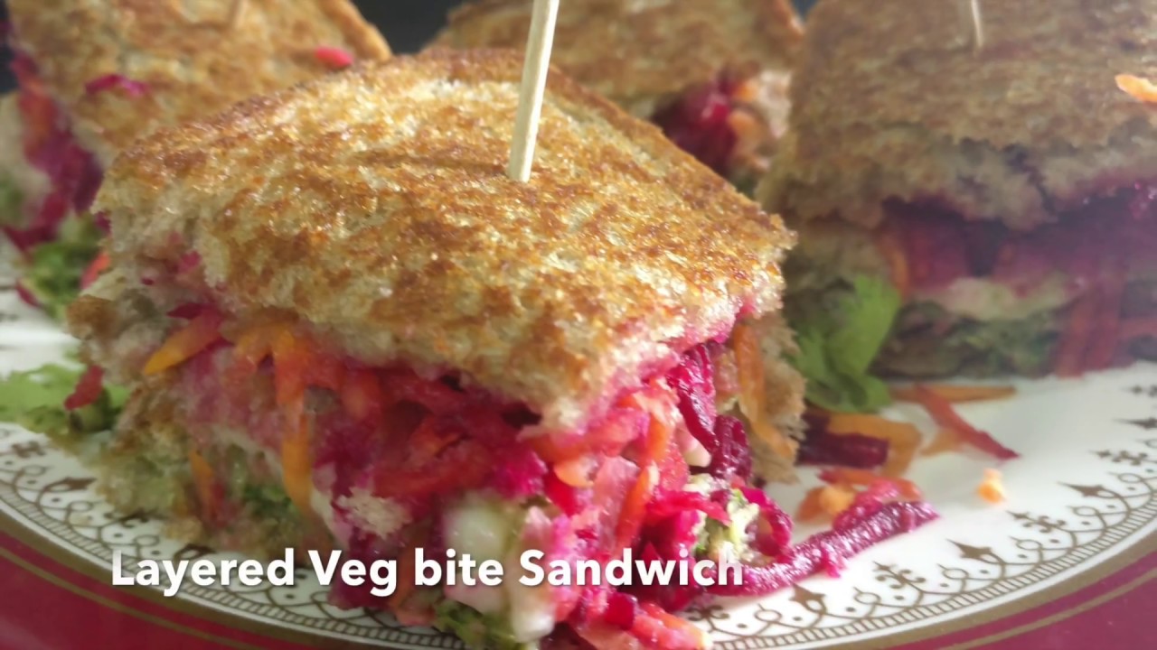 Layered veg bite sandwich as starters – healthy lunch box idea for kids