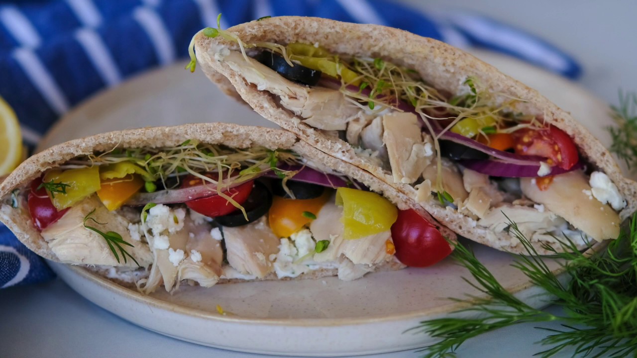 Do you ever struggle to think of something delicious and healthy to make for lunch? Same. I get so bored eating the same old salads! This week switch it up with my easy to make Greek style chicken pita! It’s packed with yummy flavor and you can make it in under 5 minutes. No excuse to eat nasty fast food for lunch!
