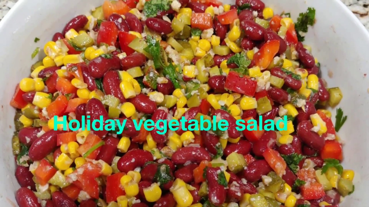 Colorful vegetable salad recipe. Quick and easy steps.