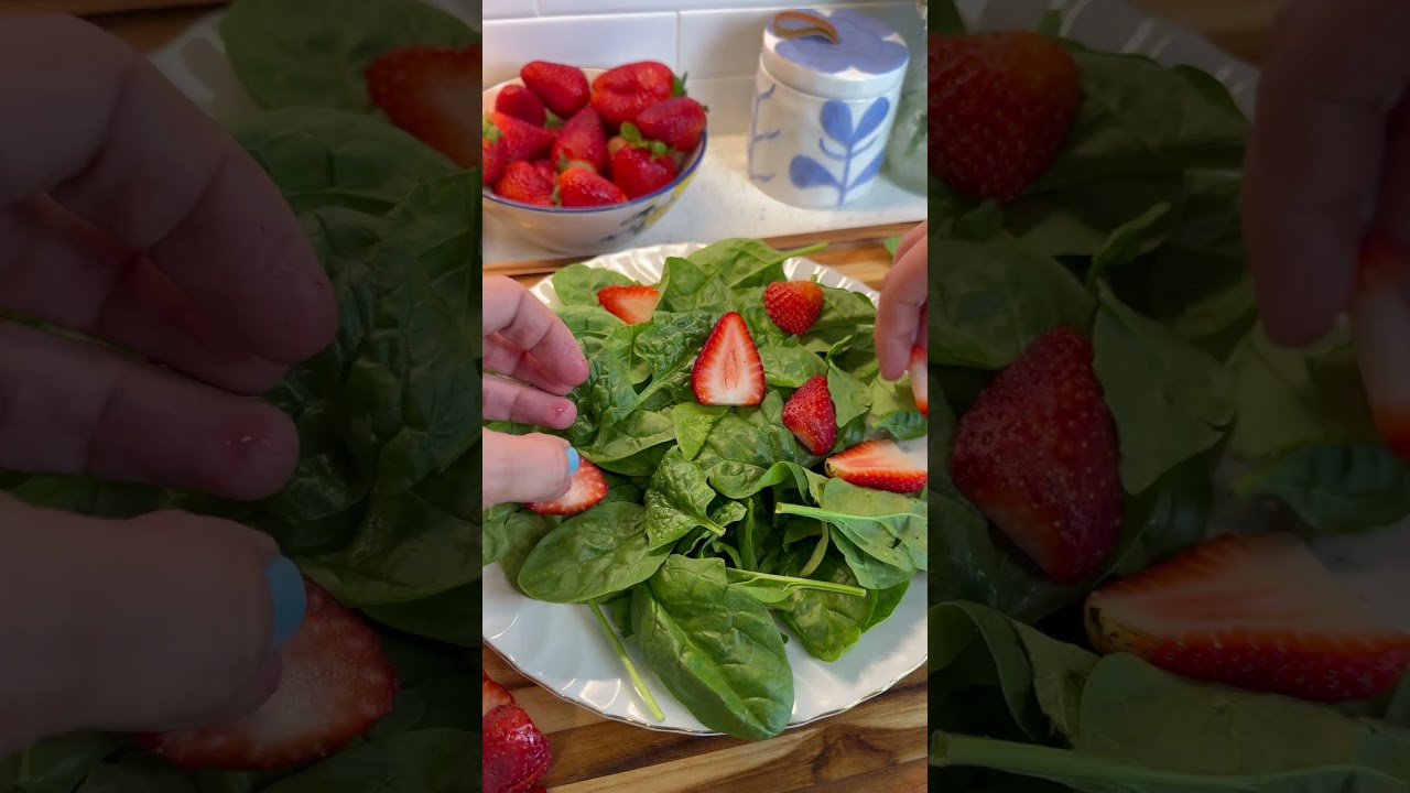 Berry Spinach Salad – spinach – strawberries – blueberries – goat cheese – maple cinnamon toasted pecansDressing: – balsamic glaze – olive oil – dijon mustard – salt & black pepper berryCuisinehealthyHealthy CuisineHealthy IdeasHealthy Lunchhealthy lunch ideasHealthy Lunch Recipeshealthy recipeshealthydinnerhealthylunchhealthyrecipesideaslunchlunch ideasrecipesaladspinachsummerRecipesVideoVlogYouTube
