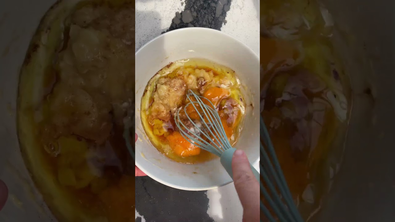 In a large mixing bowl, add bananas and mash with a masher. Then add eggs, sweetener, oil, vanilla, cinnamon, baking soda, baking powder and salt; whisk until combined.