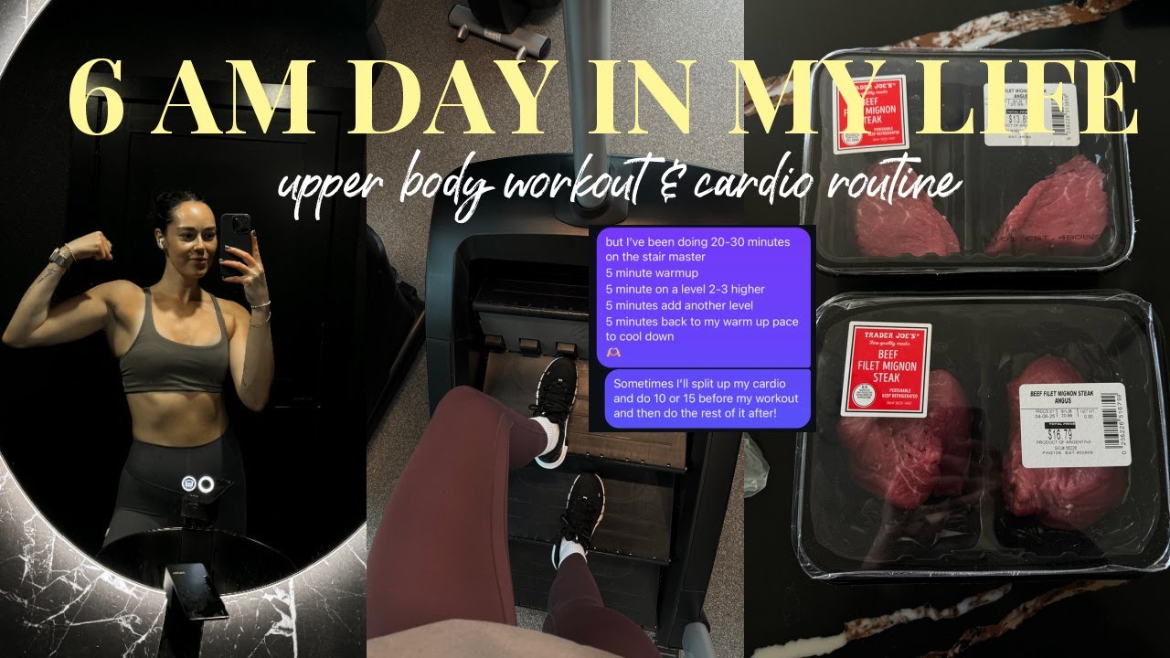 6 AM DAY IN MY LIFE: upper body workout, healthy meals & cardio routine for fat loss