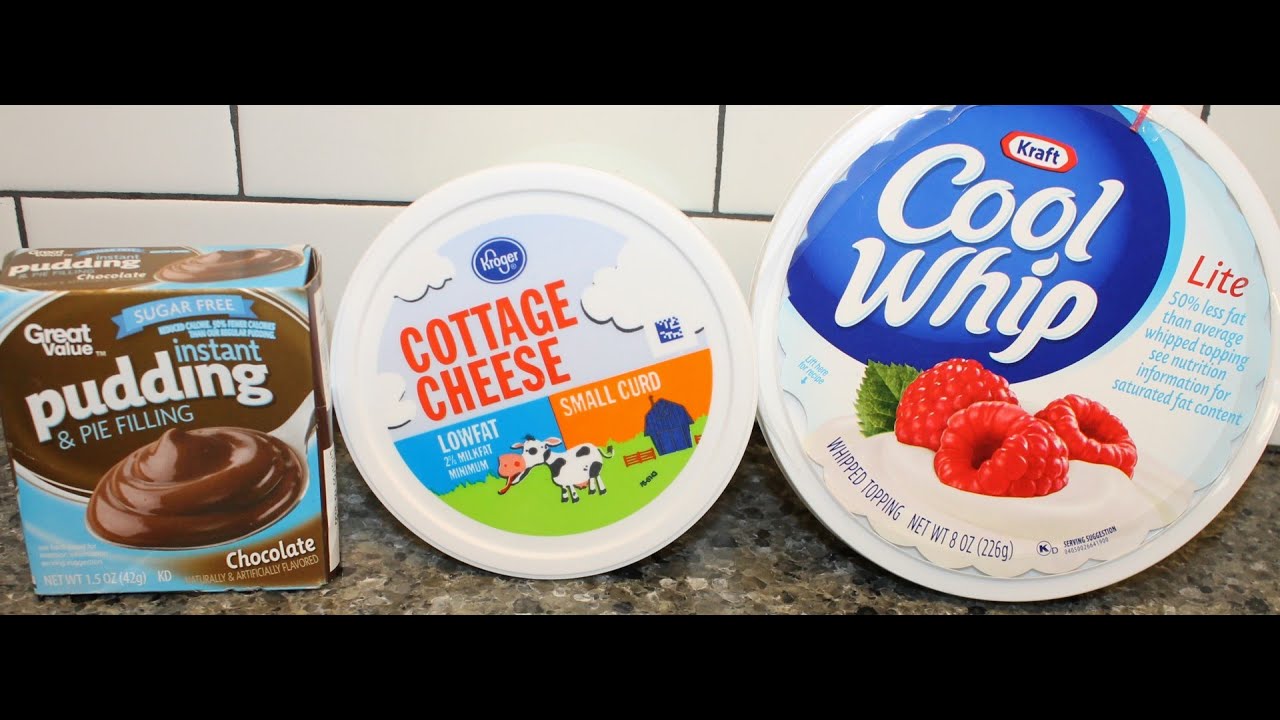 In this video, Kevin is making a low calorie recipe using only three ingredients: cottage cheese, pudding mix and Cool Whip. After preparation, store in airtight container in the refrigerator.