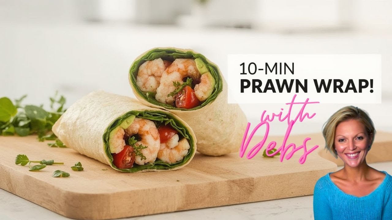 Looking for a quick, healthy dinner that’s perfect for busy moms on the go? 💪 In this episode of 15-Min Meals with Debs, I’ll show you how to make a delicious 10-minute prawn wrap packed with fresh ingredients like avocado, cherry tomatoes, baby spinach, rocket, watercress, cucumber, and juicy prawns — all wrapped up with a kick of spicy mayo! 🌯🔥
