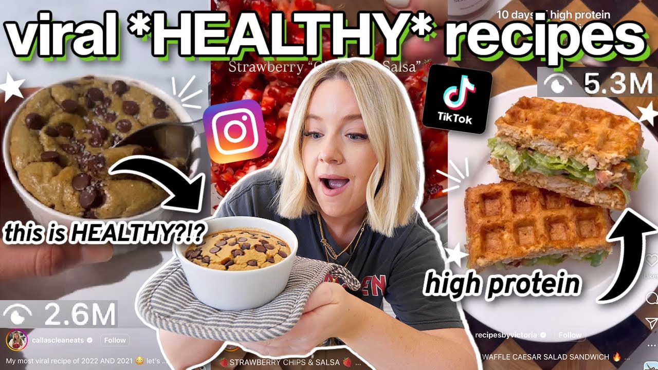 in today’s video, i tried 3 *VIRAL* recipes from tiktok/instagram! (HEALTHY, high protein…overhyped?) we’re testing out the viral cookie baked oatmeal, the viral chicken caesar waffle sandwich, and the viral chocolate strawberry “chips and salsa”! i’ve been on a health journey recently (i actually had my gallbladder surgery last week!), so i’ve been trying to find fun recipes that are also high in protein and healthy for me at the same time. i hope you enjoy watching me struggle through these viral recipes! xoxoxo