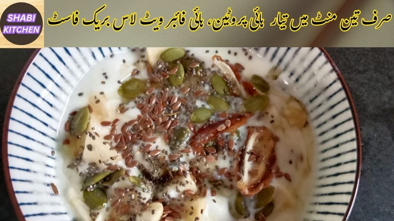 Easy aur healthy high protein, high fiber, low calorie breakfast recipe jo weight loss mein madad kare. Oats, chia seeds aur whey protein se packed yeh nutritious nashta aapko din bhar energy aur appetite control provide kare.