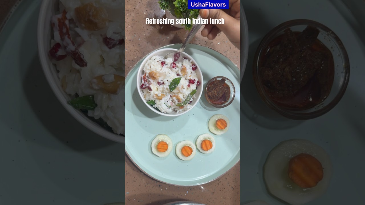 A wholesome South Indian diet plate! Soft curd rice served with spicy mango pickle and fresh cucumber-carrot salad – a quick 10-second glimpse of my husband’s diet plate. Perfect for lunch or dinner if you’re looking for a light, healthy, and tasty meal idea!