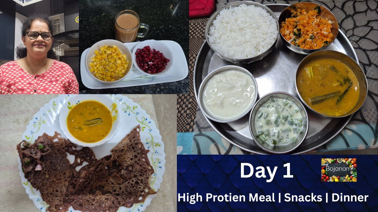 #bojanam#bojanamyoutubechannel #highproteinmeals #IndianMealPlan #VegetarianDiet #SouthIndianFood #HealthyEating #ProteinRich #WeightLossDiet #IndianRecipes #Bojanam #RagiDosa #MealPlan #sambar #ragi #ragidosa #corn #snacks #raita #carrot