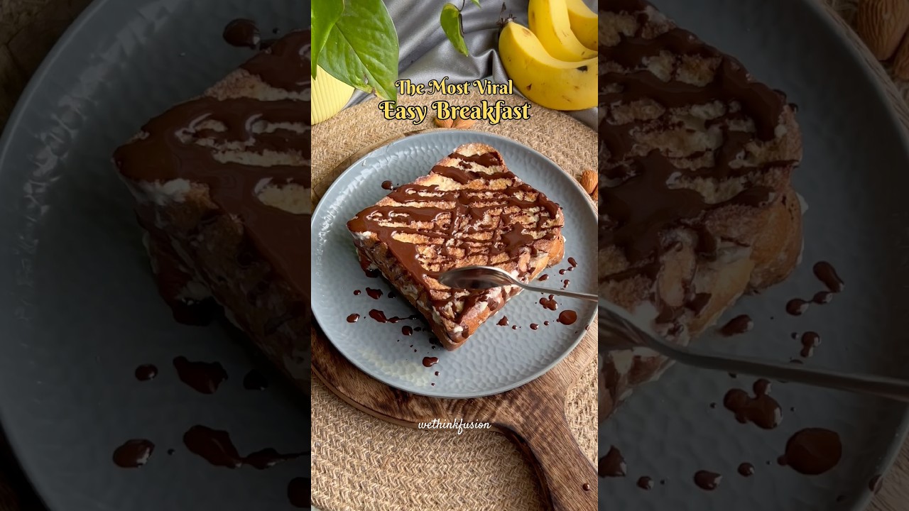 No-sugar, healthy, viral milk toast! This 3-ingredient banana bread sandwich features creamy mashed banana between slices of bread, pan-toasted with milk until golden and perfectly soaked. Finish with a drizzle of melted chocolate for an optional sweet touch!