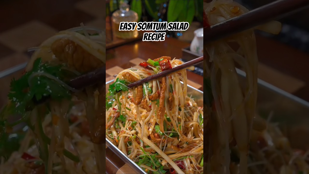 What defines a som tum is 2 things: first, the spicy and sour dressing that is unique to these salads, and second, it must be made in a mortar and pestle (though there are ways around it which we will discuss). The clue is also in the name; som means sour, and tum means to pound in a mortar and pestle.