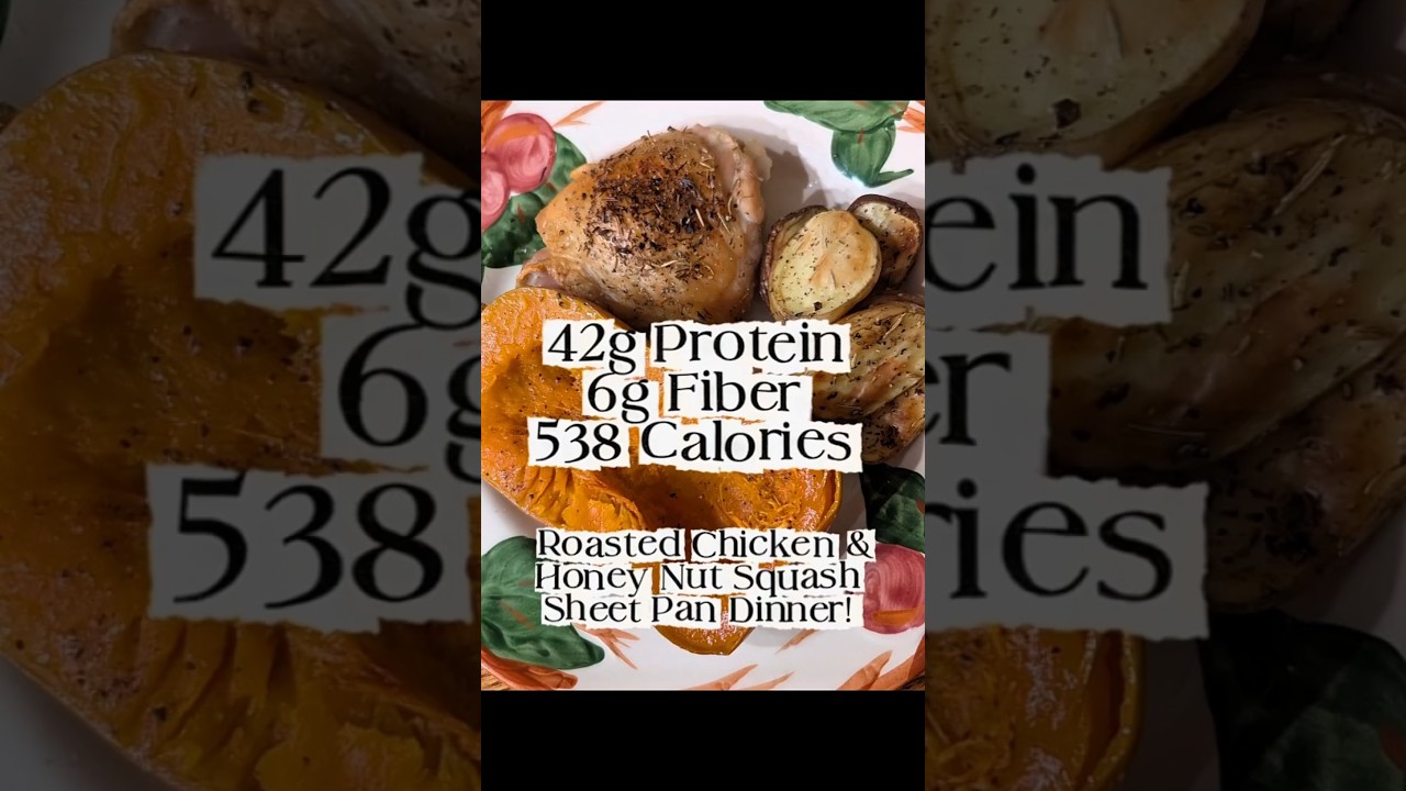 Right now these adorable honey nut squash are in season and I’m obsessed! A honey nut squash looks like a tiny version of a butternut squash, they roast up so creamy and delicious, and half is a perfect single serving size! …but you can absolutely make this dinner with any kind of squash you like! I love making extra for leftovers too! #highproteinmeals #easymeal #mealprep #sheetpandinner #cooking