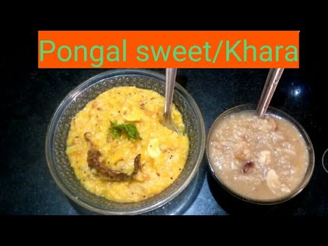 For khara pongal in a pan heat 1 cup ghee add cumin and mustard seeds ,groundnuts into it , whole red chilli, curry leaves cashew nuts and black pepper seeds into it then add the mixture into left over Rice then add 1 cup of water cook it for 3 minutes our healthy sweet and khara pongal recipe is ready to serve