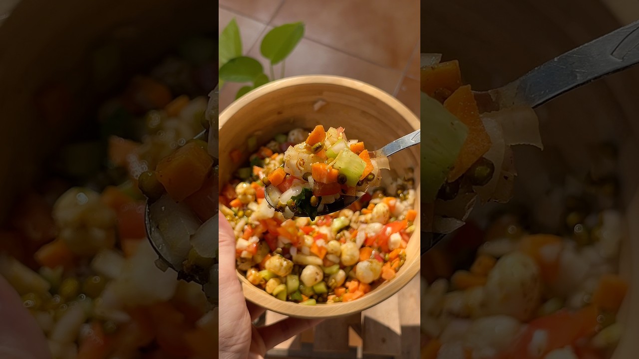 – Heat ½ tsp ghee in a pan and lightly roast makhana & moong sprouts with some masala until crisp.