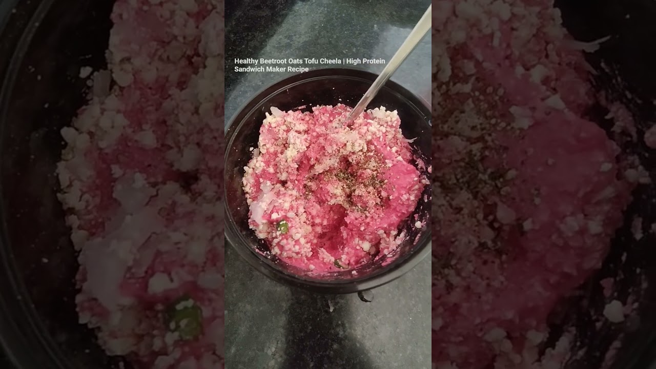 Made a healthy and colorful cheela using oats, beetroot, tofu, onion, green chilli, and black pepper, cooked perfectly in a sandwich maker. Garnished with fresh green dhaniya. This high-protein, oil-free cheela is perfect for breakfast or light meals. Easy, nutritious, and delicious recipe for healthy eating.