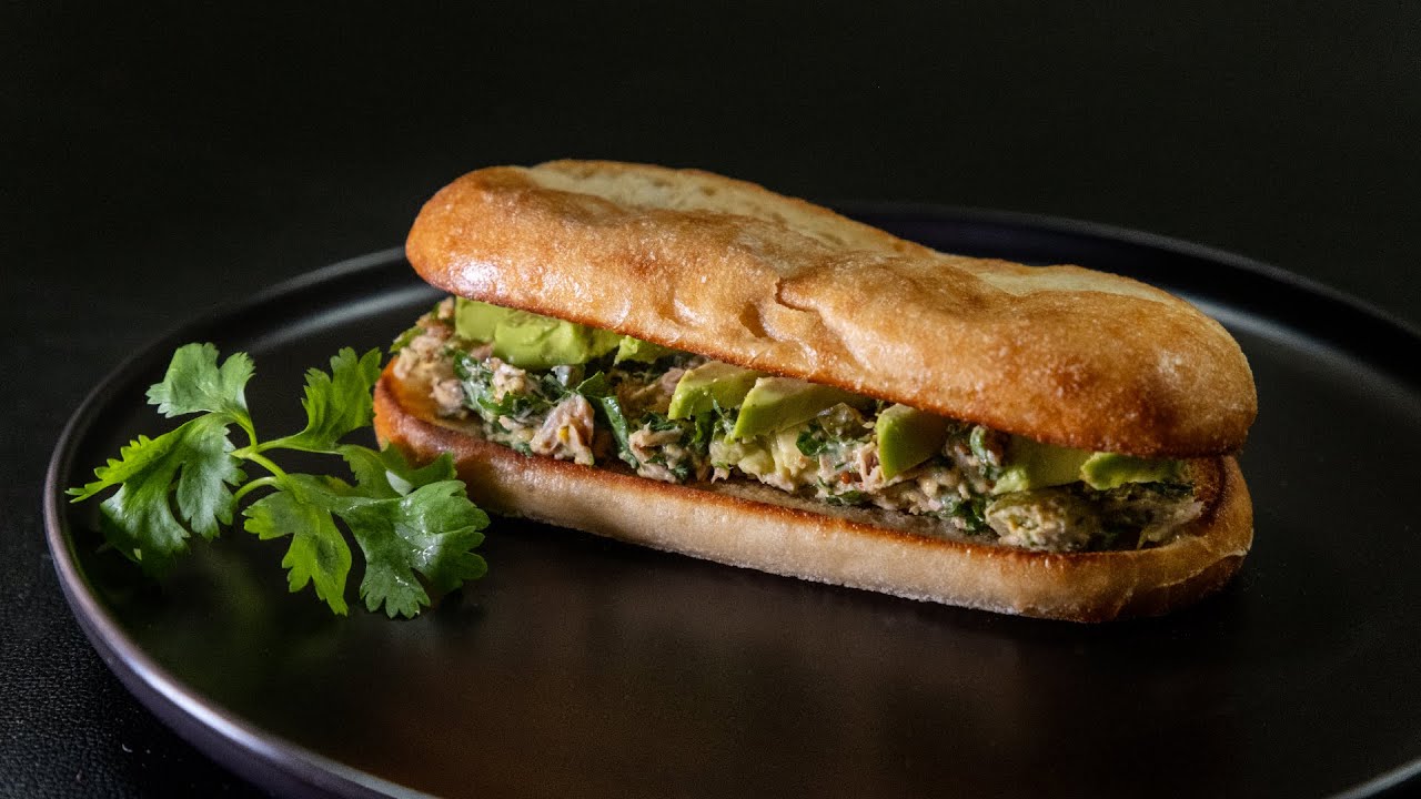 A fresh and healthy tuna sandwich made with avocado, herbs, pickles, and a zesty lemon touch.
