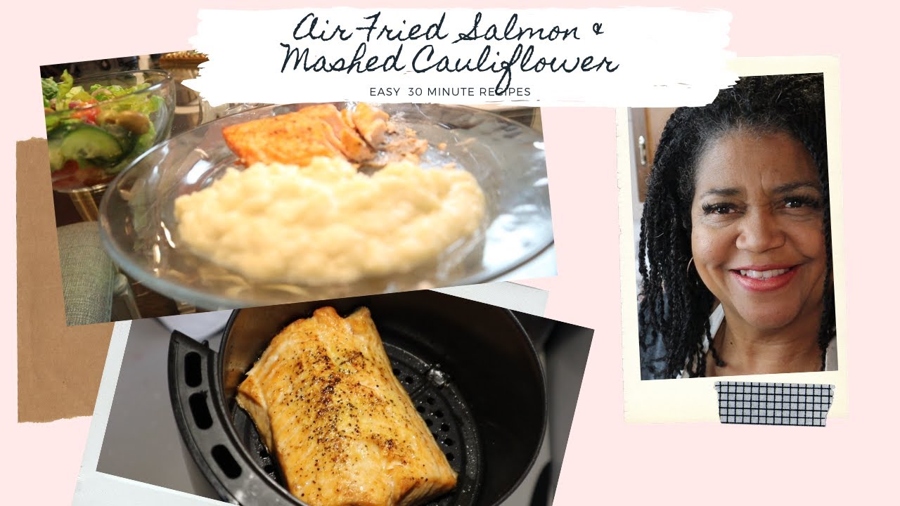 Join me as for a low calorie dinner . Air fried salmon with mashed Cauliflower and side salad. Easy and quick to prepare and so delicious! Thank you for supporting on my weight loss journey! Enjoy!