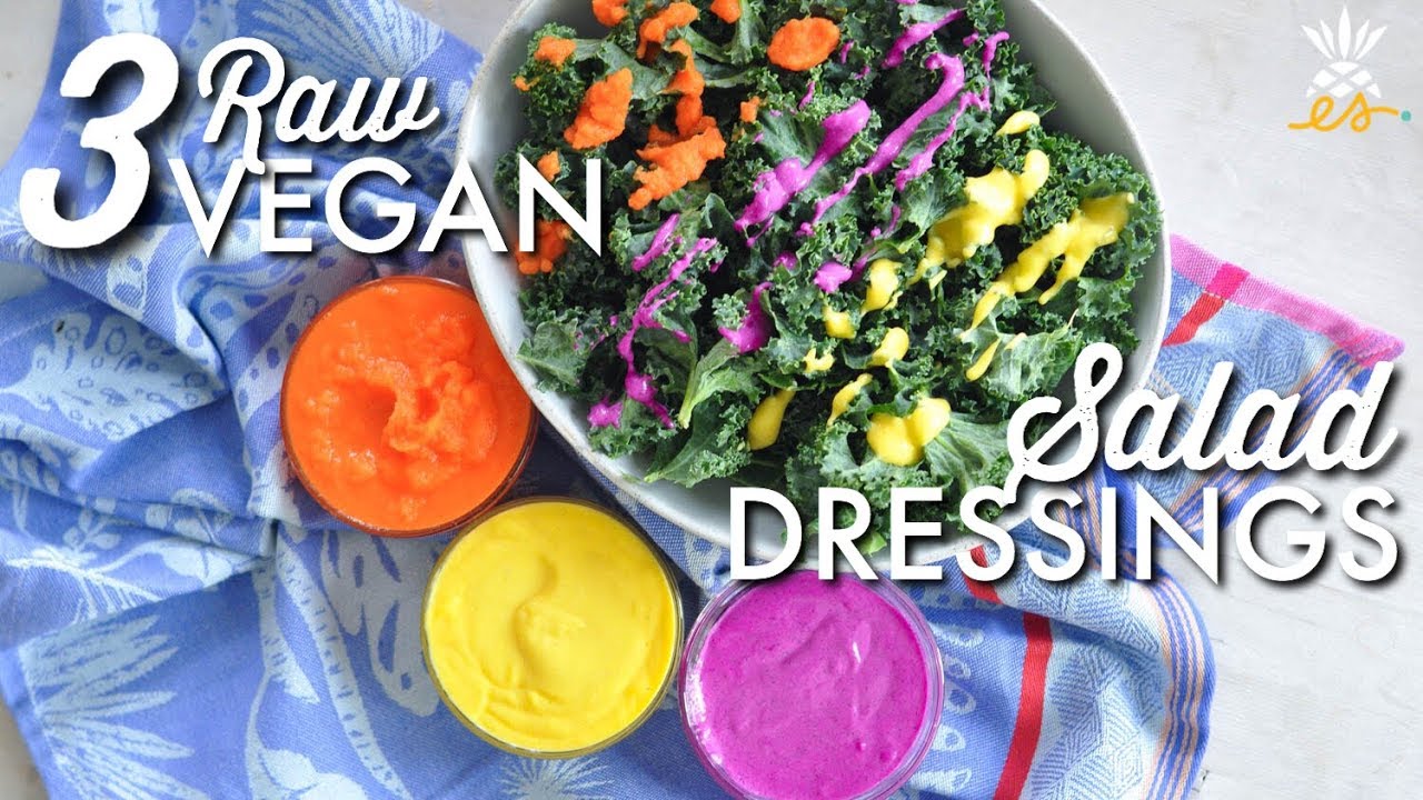 Raw fruits, veggies, nuts, and seeds are living foods. Because they are unprocessed and have not been exposed to heat, they retain all of their beneficial enzymes and nutrients, meaning more bang for your buck, and better overall health! These 3 raw vegan salad dressings are bold, bright, delicious, and nutritious. Try them drizzled on your favorite leafy greens, as a dip with fruits and/or veggies, or as a sauce on your dinnertime meal.