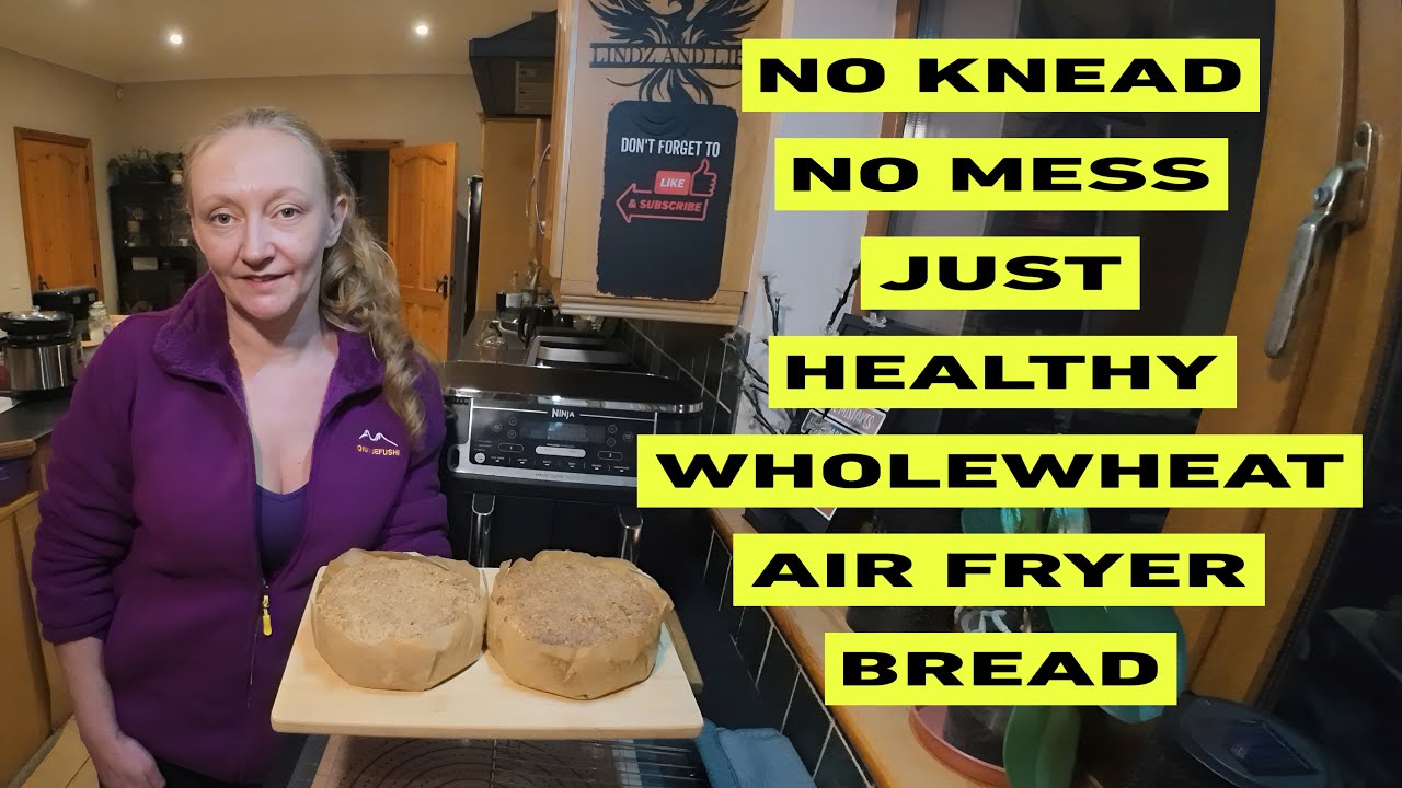 This is the easiest no knead No faff Air Fryer wholewheat Bread. It’s perfect, and anyone can make it. Homemade bread with no effort and healthy and cheap to make.