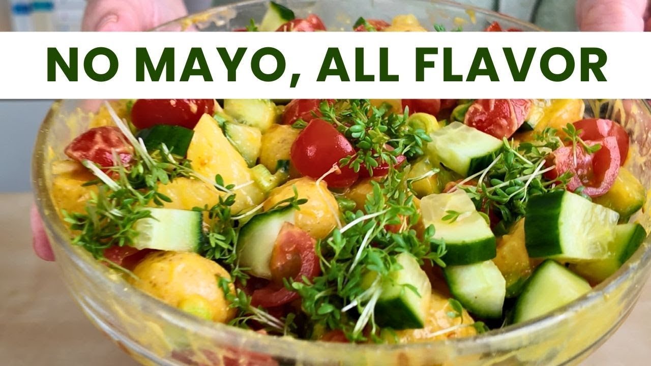 (dairy-free potato salad, fat-free recipe, healthy salad intro)
