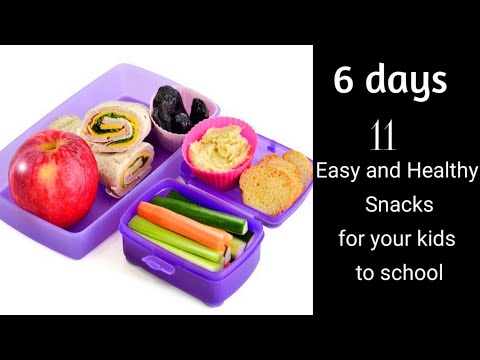 11 Easy,different and healthy snacks are given in this video for your kids going to school.Snacks that are easy to make and pack for kids to school are explained.Snacks that are fruit salad,nuts,veg salad,sundal,puffed rice laddu,bread with peanut butter,jam are given for 6 days as 6 snacks.Extra 5 snacks such as aval,sweet paniyaram,wheat cup cake,etc are also given which can be alternative for any days.It will be useful for all Moms having school kids.