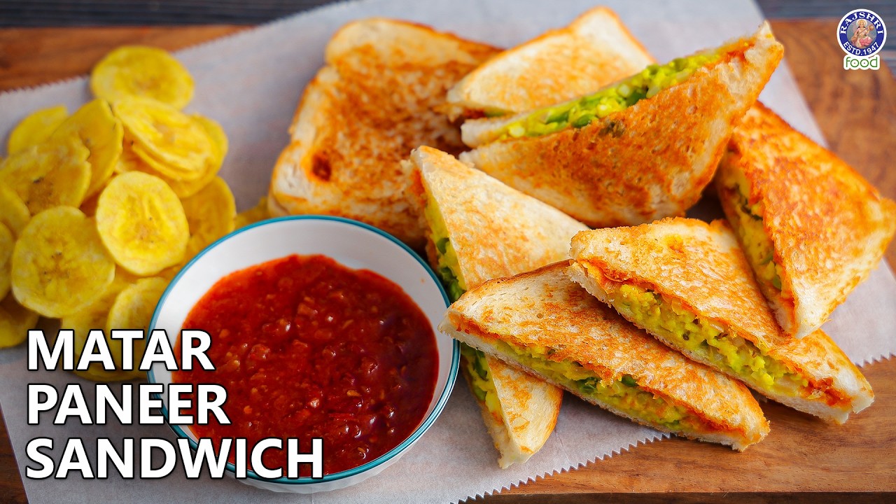 Learn how to make Matar Paneer Sandwich – a tasty, comforting, and kid-friendly snack, packed with soft paneer, sweet peas, and mild, delicious flavours.