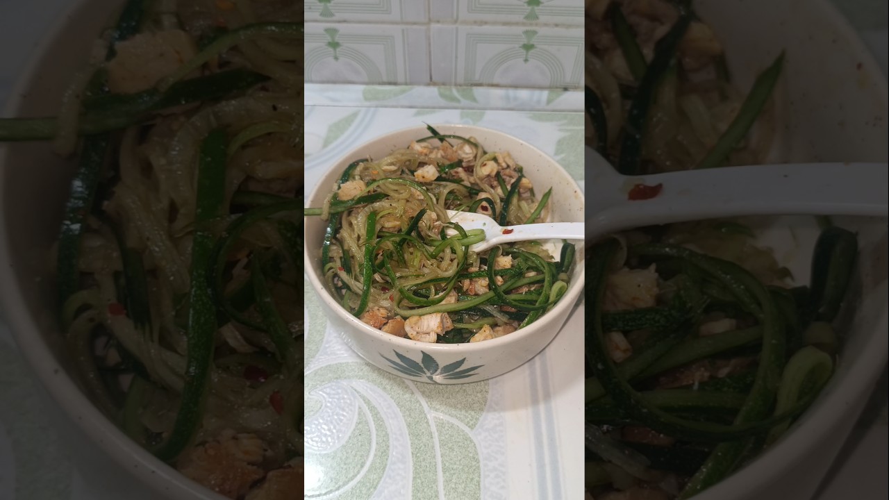 4️⃣ Toss in the cucumber noodles and sauté lightly (do not overcook to maintain crunch).