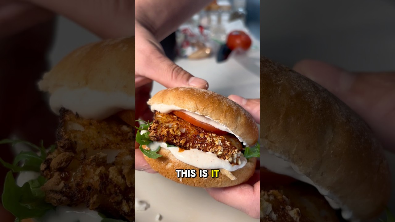 day 3 of my 9 pound reset and i wanted something fried but still weight loss friendly. made this crispy air-fried fish sandwich with greek yogurt-based coating and sauce, on a dave’s killer bun with arugula, tomato, and onion. it’s crunchy, tasty, and still on track. follow for day 4.