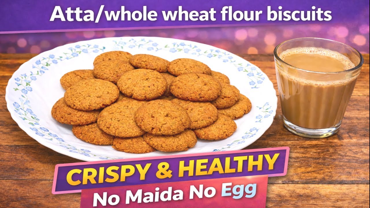 Aaj main bana rahi hoon crispy aur healthy Atta Biscuit recipe jo bilkul bakery style hai lekin bina maida aur bina egg ke. Yeh gehun ke biscuit ghar par bahut aasani se ban jaate hain aur chai ke saath perfect lagte hain.