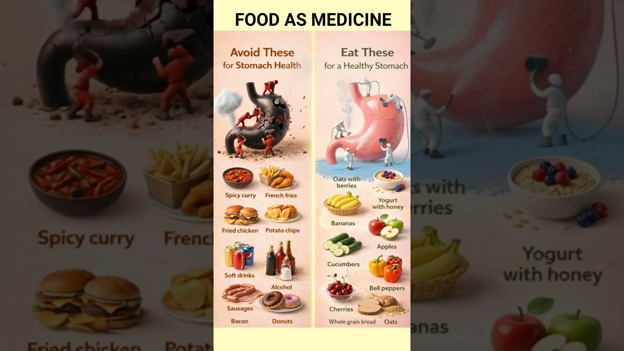 In this video, we compare foods that can damage your stomach vs. foods that help heal and protect it. Some everyday items may be silently irritating your digestive system, causing acidity, bloating, inflammation, and discomfort.
