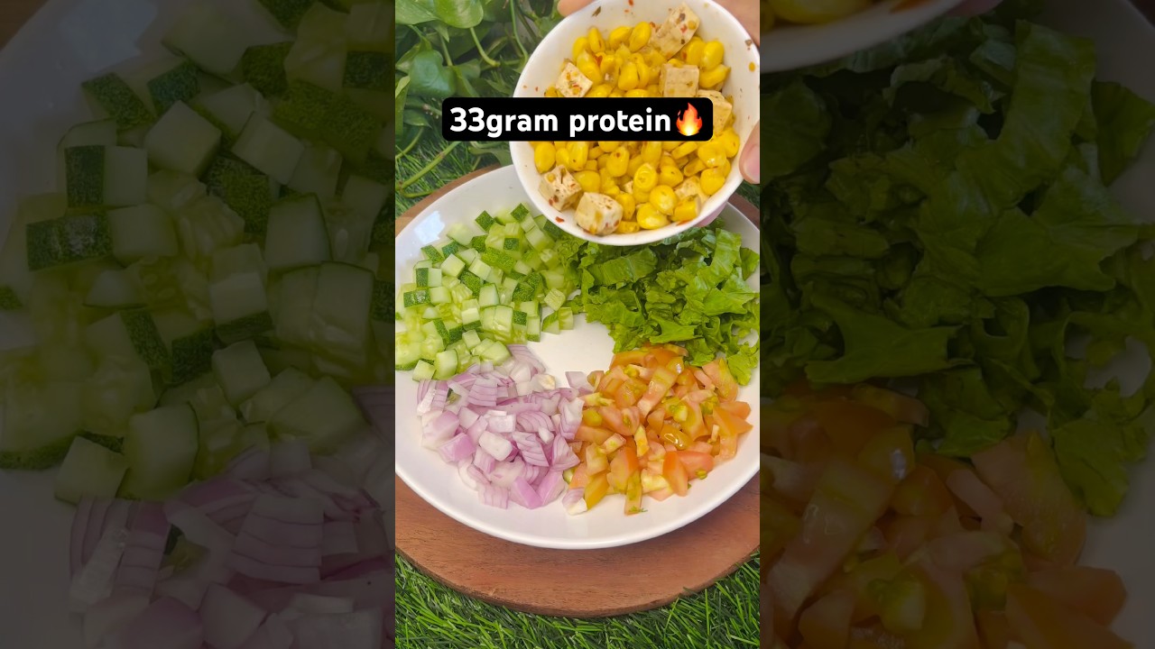 Chopp all the vegetable and add the fried corn &paneer and pour the dressing over the salad. Mix well and enjoy this refreshing salad.