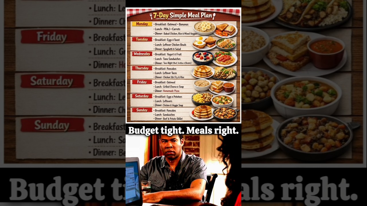Looking for a 7 day meal plan that is simple, realistic, and affordable? This simple weekly meal plan is perfect for busy families who want easy home cooked meals without overspending.