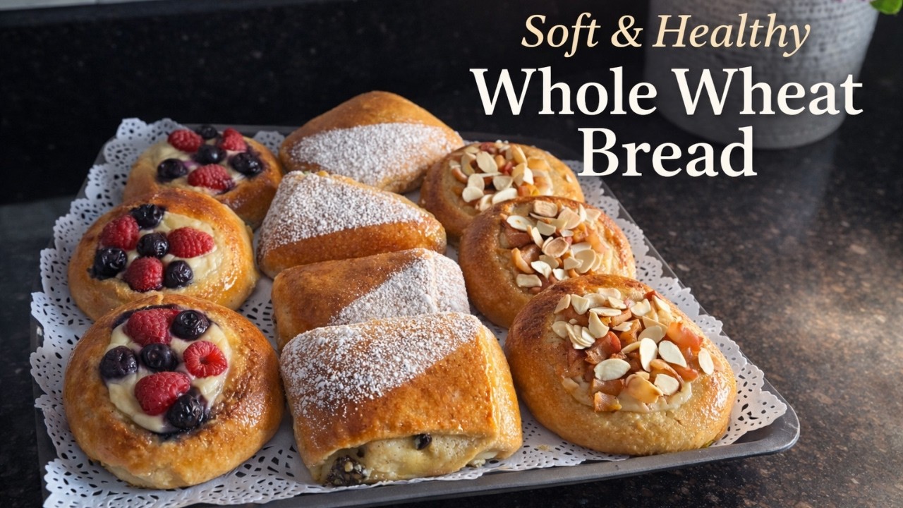 Discover how to make soft, fluffy whole wheat sweet buns that are healthier, delicious, and perfect for breakfast or snacks! In this step-by-step baking tutorial, you’ll learn how to prepare homemade whole wheat buns with simple ingredients and easy techniques. These naturally sweet buns are made with wholesome whole wheat flour and topped with fresh fruits for a beautiful and tasty finish.