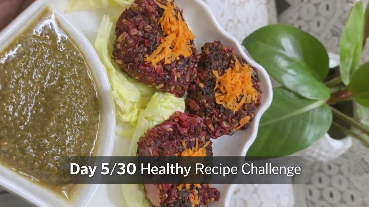 Day 5 of my 30 Days Healthy Recipe Challenge features a colorful and nutrient-dense Sprouted Moong, Beetroot & Carrot Tikki 🌿
