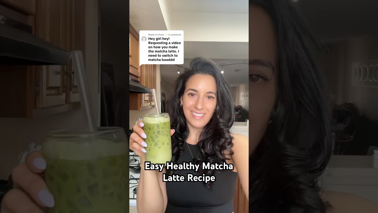 Easy healthy Matcha latte recipe. Health tips for women. Weight loss. Weight loss foods. Weight loss tips. Healthy food ideas. Non inflammatory. Wellness. Healthy recipe.