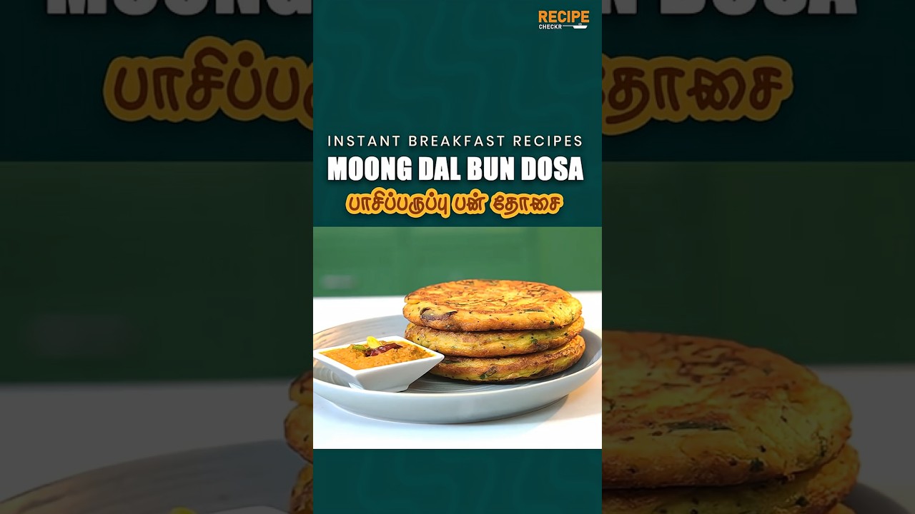 Moong Dal Bun Dosa is a soft, spongy and protein rich instant breakfast recipe made without fermentation. This healthy bun dosa is perfect for kids and weight loss diet. It is a great alternative to rava dosa or regular dosa and can be prepared in just 15 minutes. If you are looking for healthy breakfast recipes, protein rich dosa, or easy South Indian breakfast ideas, this recipe is perfect for you. I’m Chef Sunder, welcome to Recipecheckr.