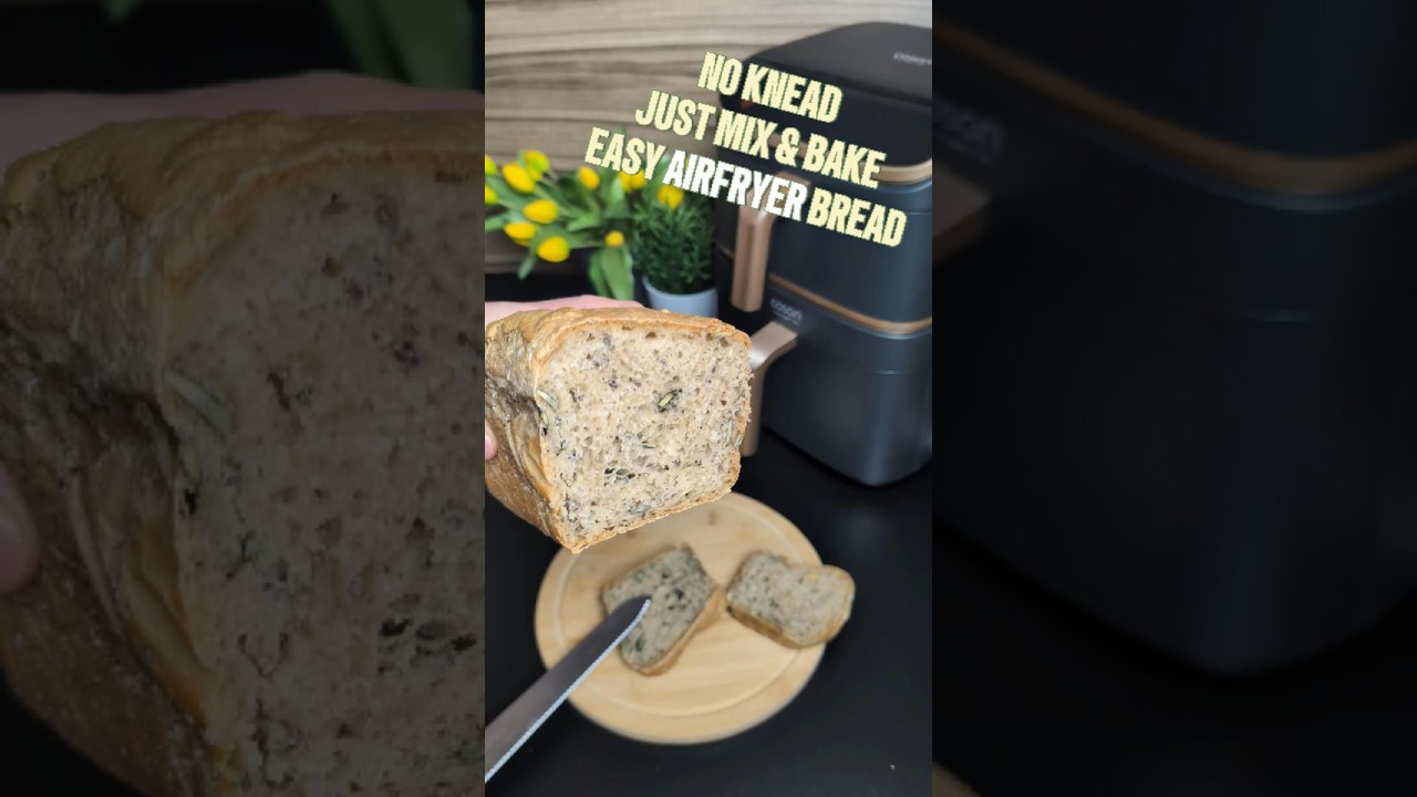 This no-knead spelt bread is soft inside, crispy outside, and made entirely in the air fryer 🌻🍞