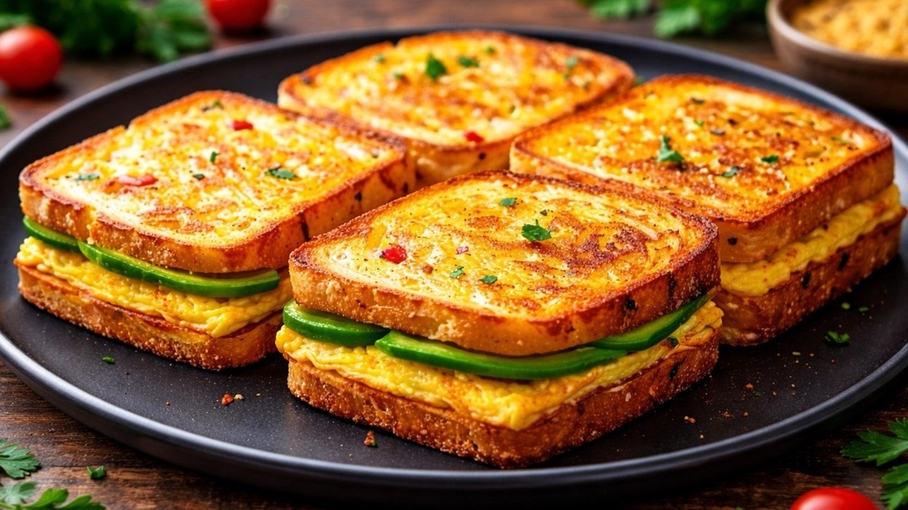 You’ll want to make this easy toast breakfast every day! A brilliant trick for toast and eggs. These delicious sandwiches are soaked in an aromatic egg mixture with herbs , filled with tomatoes, green onions, cheese, wrapped in avocado – and are ready in just 5 minutes in the pan. Perfect for a quick breakfast, brunch or hot dinner and ideal for beginners. In this video I show you step by step how to prepare a delicious egg and toast sandwich: crispy on the outside, juicy on the inside and incredibly aromatic. Perfect for anyone who loves simple recipes with just a few ingredients: eggs, toast, cheese and vegetables. If you are looking for “French toast”, “quick breakfast”, “toast recipe”, “pan egg recipe”, “egg toast breakfast” or “easy everyday breakfast recipe”, then this video is for you!
