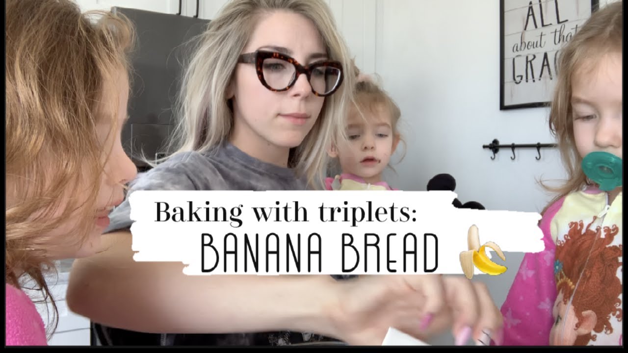 Hi Guys! We make banana bread multiple times a week – Its our favorite snack loaded with lots of butter. I found this recipe a few years ago while google searching & over time I’ve tweaked it a bit and I believe, perfected it. 🙂 I know the video is a little chaotic but… triplets. So Ill leave the directions below.