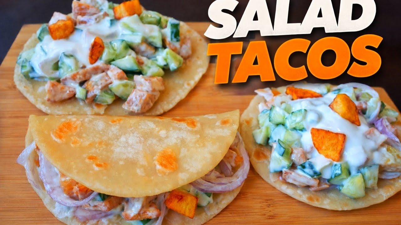 Looking for a quick, fresh and healthy meal? These salad tacos are light, creamy and full of flavor. Soft tacos are filled with crunchy cucumber, juicy chicken, onions and crispy bites, then topped with a smooth creamy dressing. Perfect for lunch, dinner or a quick snack at home.
