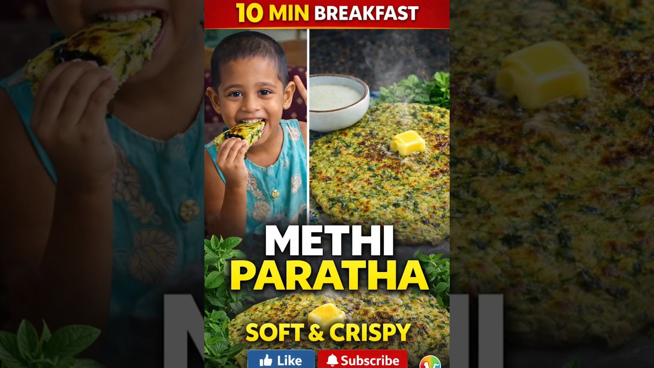 Crispy Methi Paratha in 10 Minutes!Easy Breakfast Recipe#delicious#kids#cooking#trending#homemade Soft & Crispy Methi Paratha Recipe 🌿