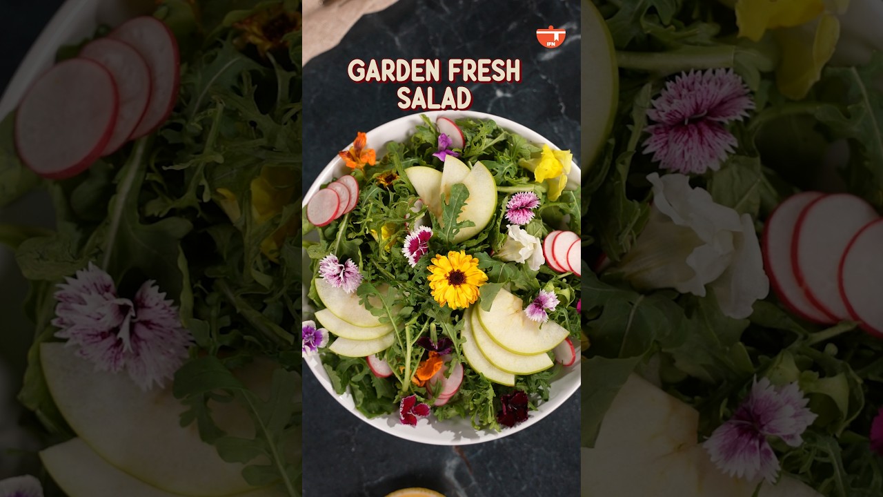 Garden Fresh Salad is a vibrant bowl of crisp greens, fresh fruits and delicate edible flowers. Light, refreshing and naturally beautiful, this salad brings together sweet apples, peppery radishes and tender greens, finished with a simple apple cider honey dressing. Perfect as a healthy side, a light lunch or a refreshing starter.