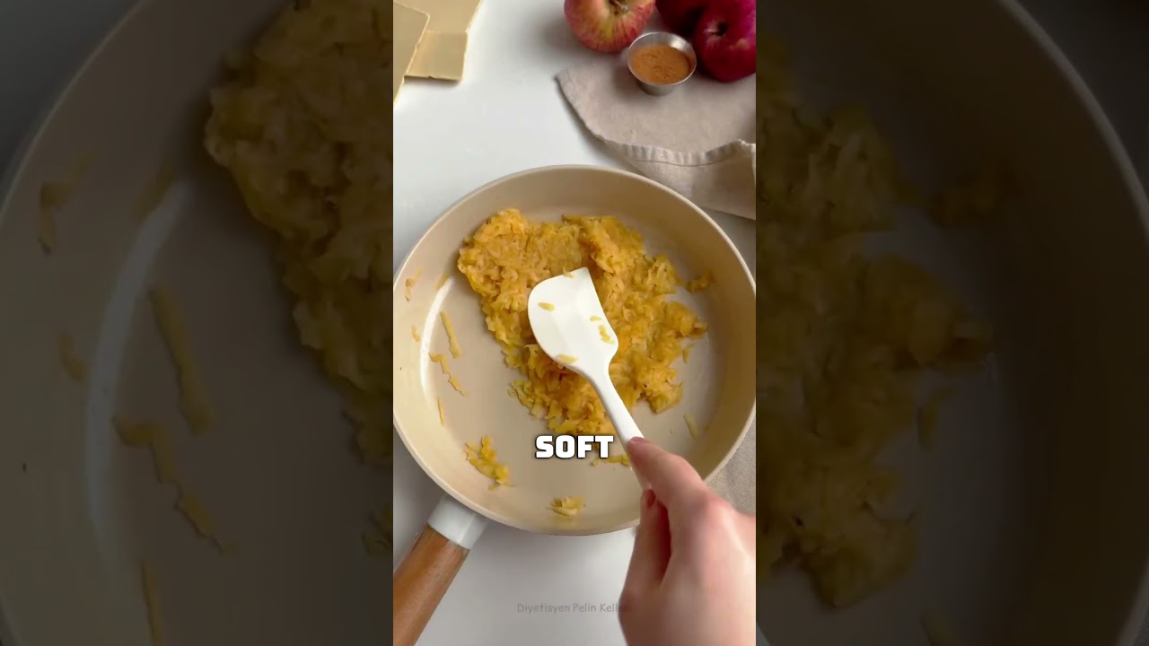 2. Cook the grated apples in a pan until soft.