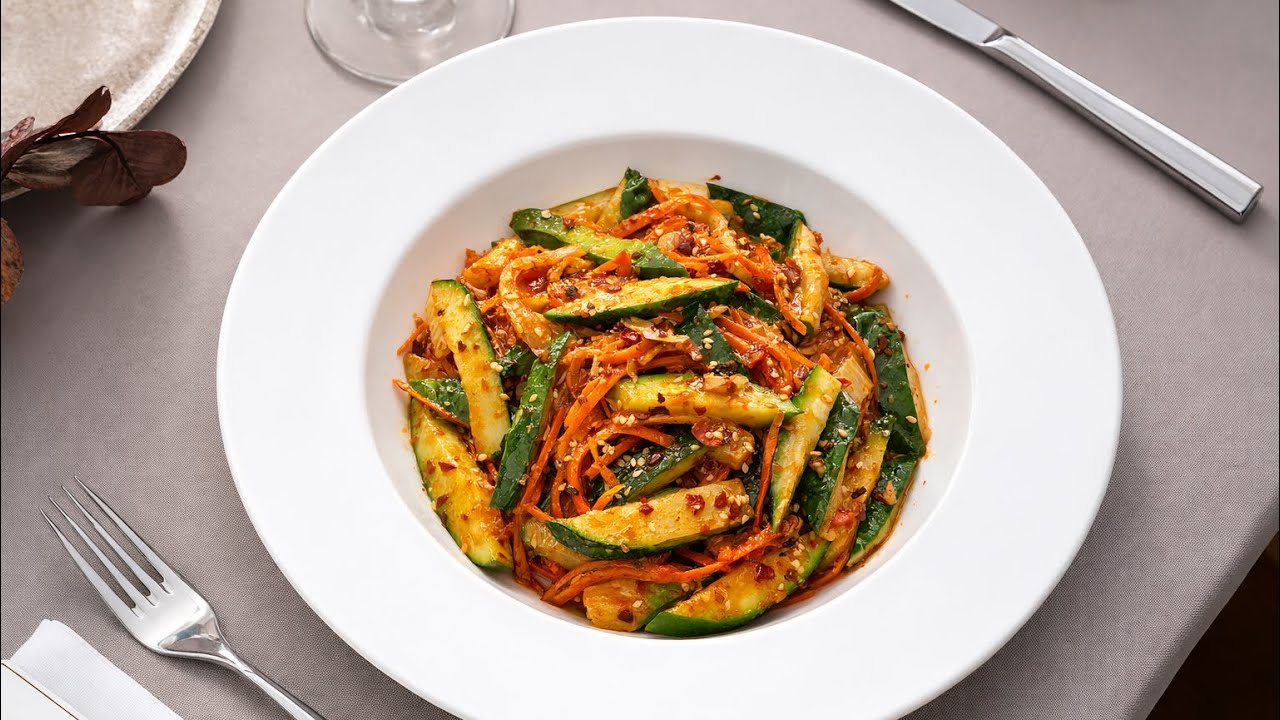 This video shows an “easy recipe” for a refreshing salad. We combine fresh “cucumber” slices, vibrant “red pepper” strips, and shredded “carrot” for a delightful dish. It’s a “quick recipe” that’s perfect for any meal, bringing a touch of “home cooking” to your table.