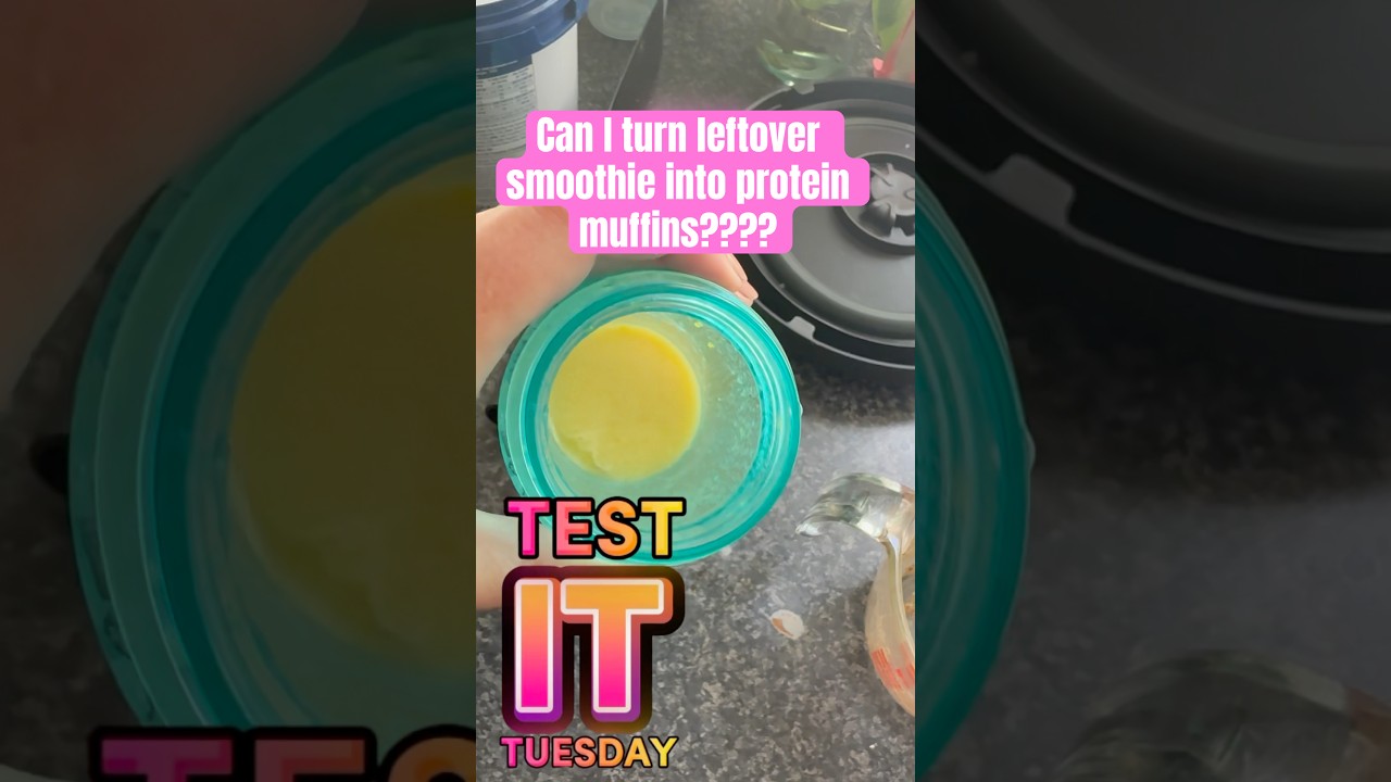 I had some leftover smoothie and thought… could I turn this into a quick healthy grab-and-go breakfast muffin?