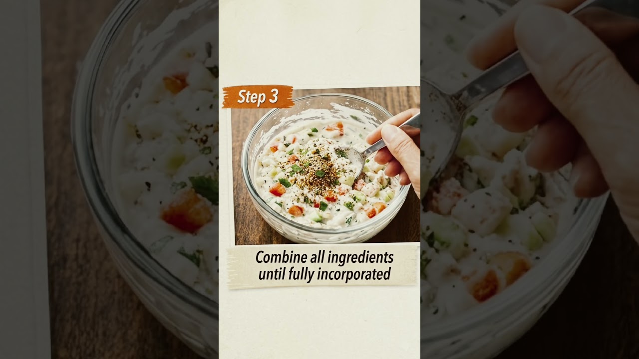 Step 1: Take 1/2 cup curd in a bowl. Add chopped cucumber, tomato, onion, and carrot.