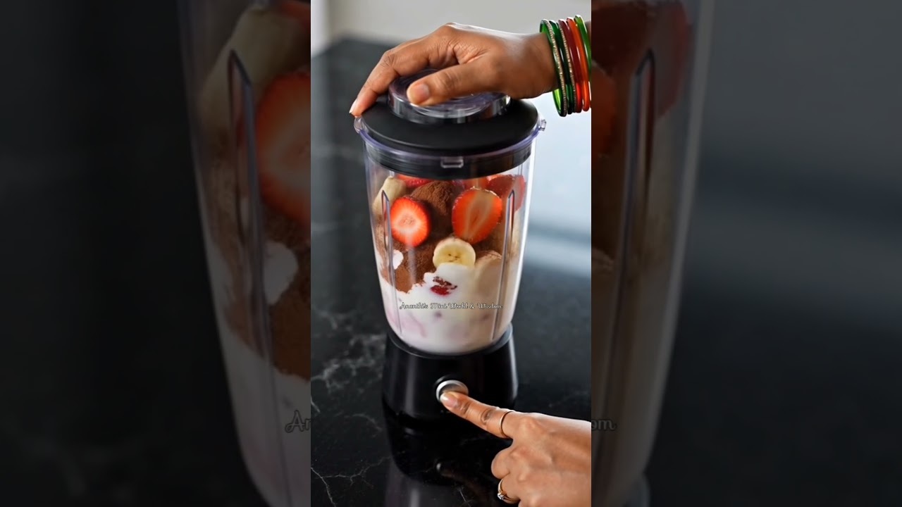 In this cinematic cooking video, you will see the simple step-by-step preparation of this healthy smoothie made with fresh ingredients. The creamy texture, natural fruit sweetness, and hint of chocolate make this shake both nutritious and satisfying.