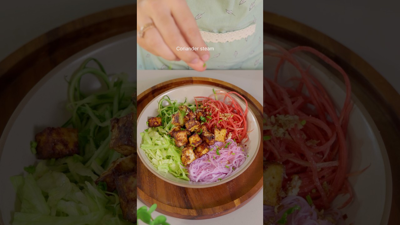 5. Air fry tofu at 180°C for 9-10 minutes until crisp. Add to salad.