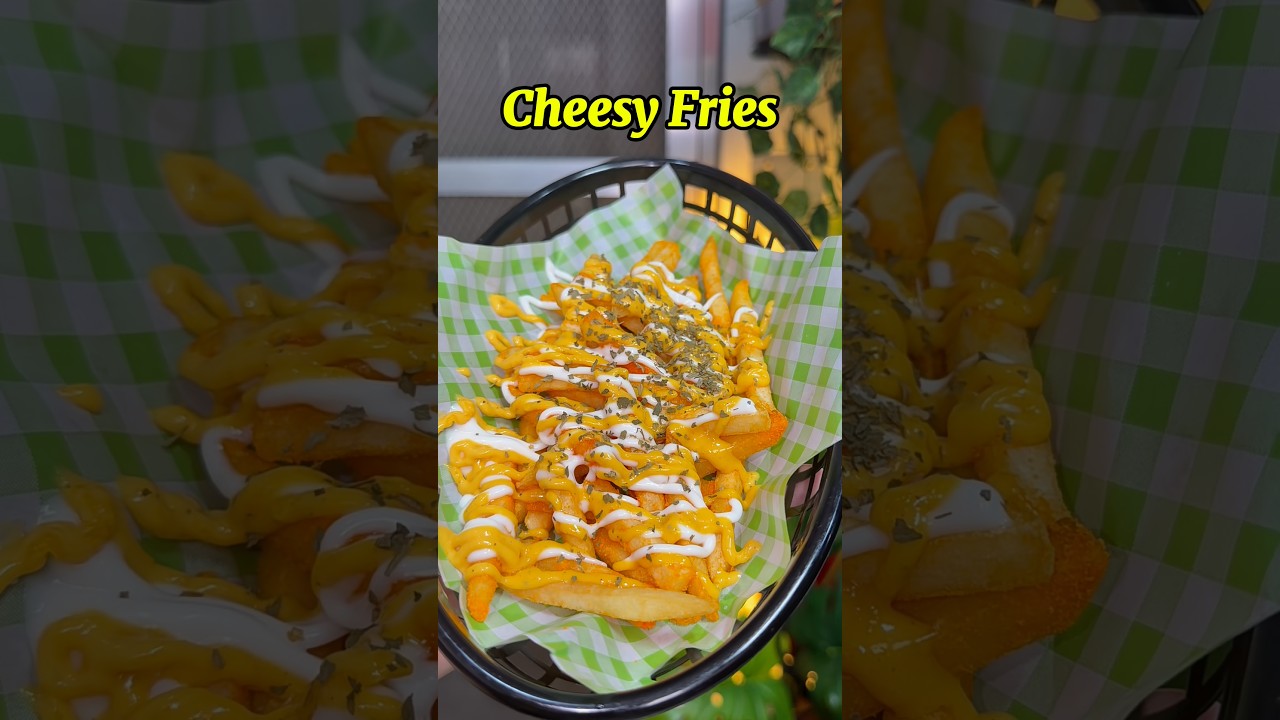 Cheesy Fries Recipe | snacks, food business ideas, or merienda cravings, made by deep frying crispy golden fries and tossing them in flavorful cheese powder before serving in a food tray basket lined with parchment paper, then topping with creamy mayonnaise, homemade cheese sauce, and a sprinkle of parsley leaves for added taste and presentation.