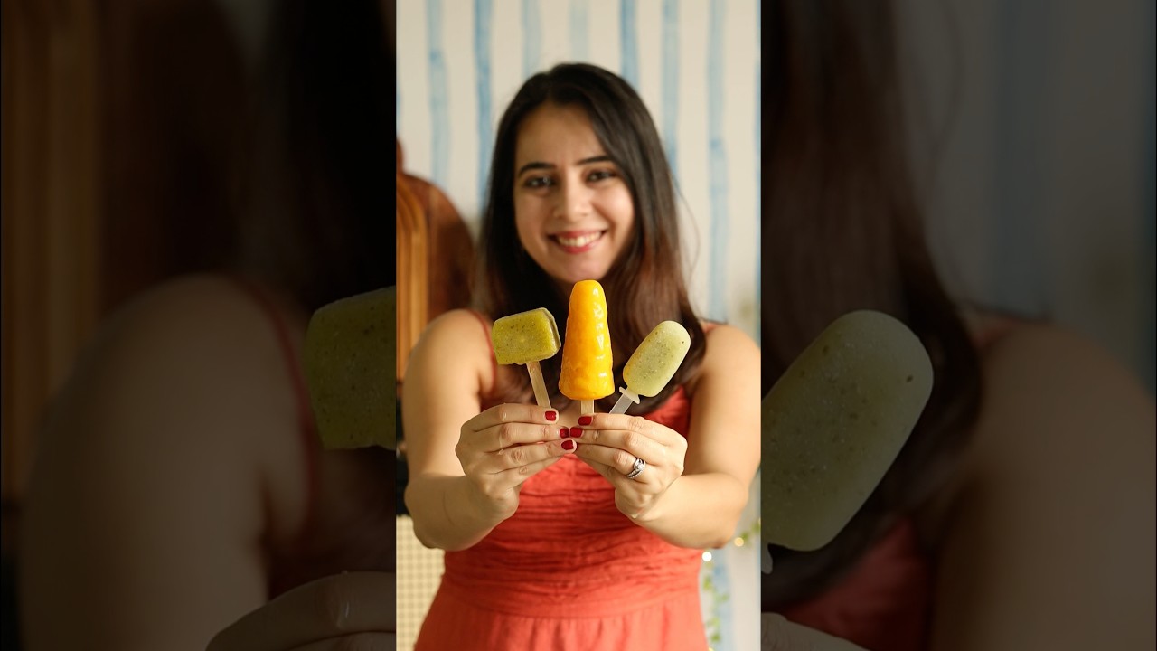 Blend in 1 mango, 1 cup coconut water, 1/4 cup cocnit malai, honey to taste and 1/2 tsp vanilla extract. Pour in moulds, freeze and enjoy.